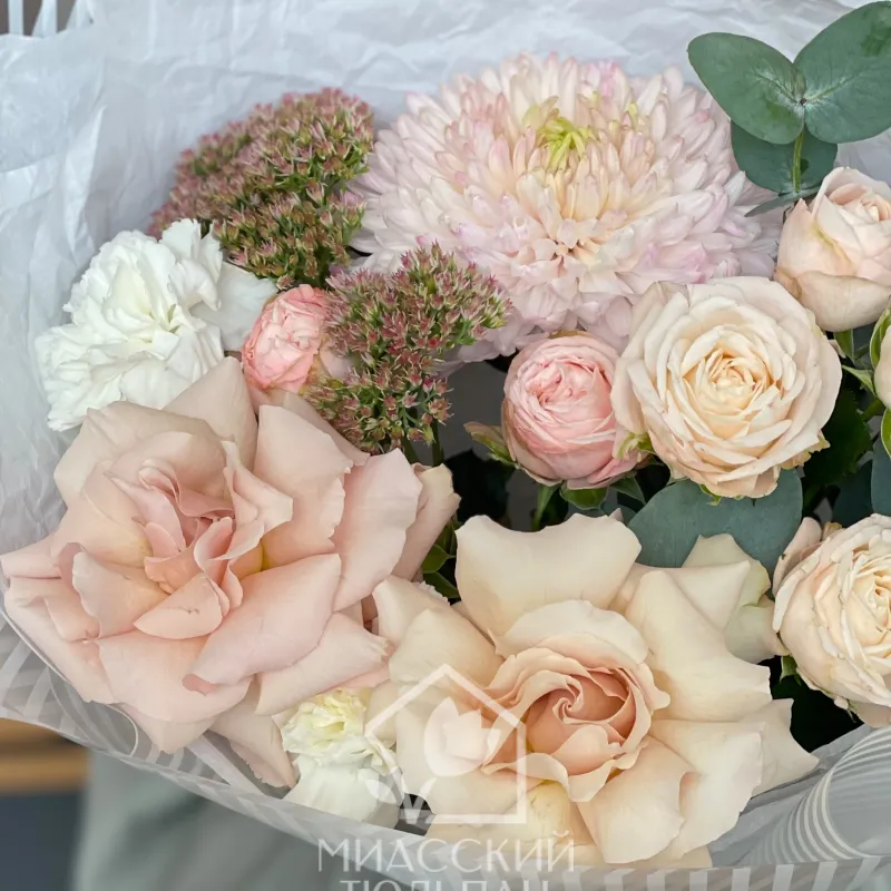 Спасибо большое. Сервис супер, букет шикарен. Делали доставочку на юбилей, сюрприз удался. Девушка в магазине очень приятная, посоветовала, рассказала. Удаленно согласовали все детали. Просто супер. Процветания Вам.
